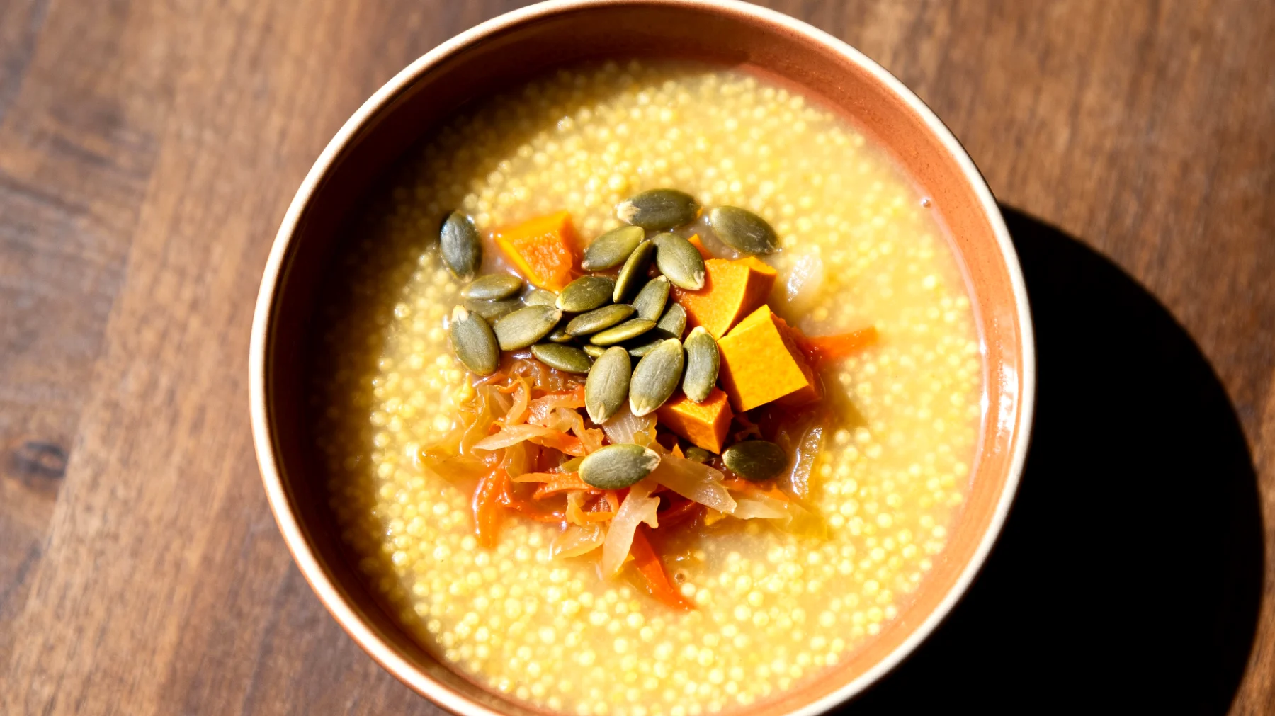 Chi lavora con orari sballati sa quanto sia difficile mantenere energia costante, buona digestione e concentrazione. Questa zuppa risponde a esigenze specifiche grazie a caratteristiche ben precise. L’impatto glicemico moderato del miglio abbinato alle verdure ricche di fibre permette un rilascio graduale di glucosio, evitando quei picchi seguiti da crolli energetici che causano sonnolenza improvvisa. L’alto contenuto di fibre favorisce una sazietà prolungata e nutre il microbiota intestinale, spesso compromesso nei lavoratori a turni.